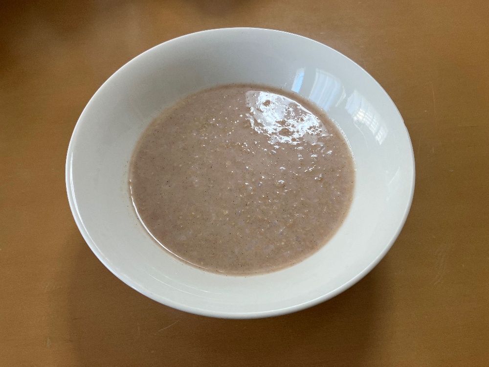 スジャータが作った伝説の乳粥から着想を得た、古代米を使った紫色の発酵粥。